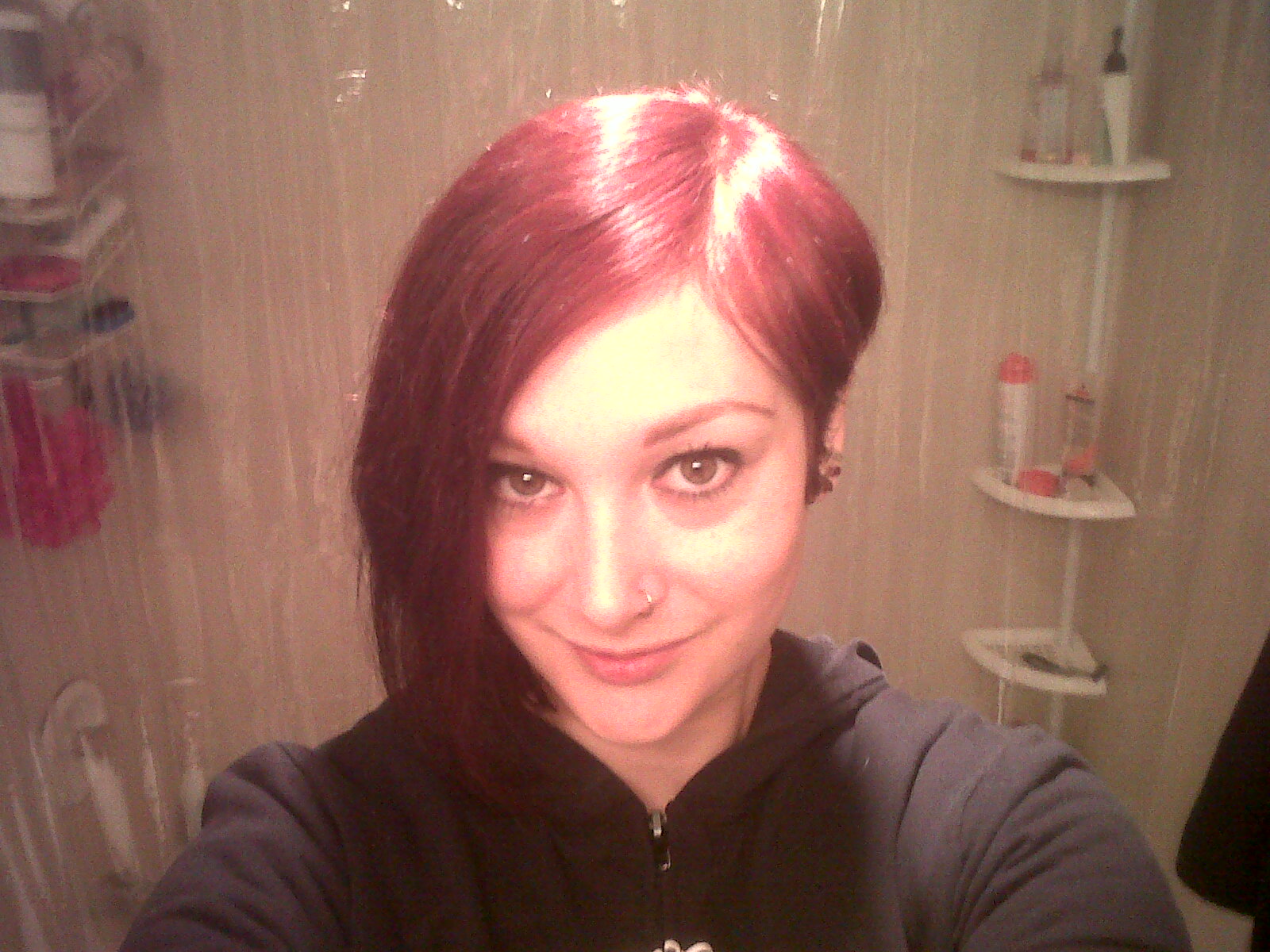 One thing to be aware of with the Garnier product is that it is designed for use on dark hair colors, and it will lift your dark hair and deposit a vivid red color. I have black streaks in my hair, and the color of my streaks is now more of a burgundy tone. Not a big deal for me, but I didn't expect it, and now I need to get my streaks touched up (I needed to any way :p).